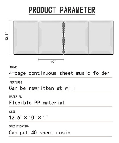 A pasta de partituras tem um PP de 4 lados capa dura, mesmo que a prateleira de música não suporte páginas externas, ela pode suportar a partitura