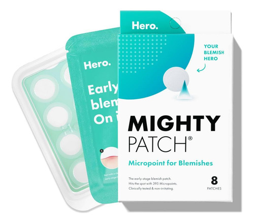 Mighty Patch Micropoint para manchas da Hero Cosmetics – Adesivo hidrocolóide para tratamento de manchas de acne para espinhas em estágio inicial e espinhas ocultas, 395 micropontos exclusivos (8 adesivos)