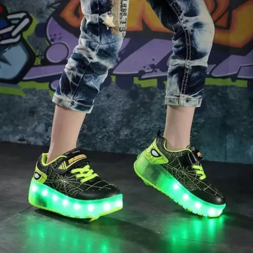 Tênis LED com 2 rodas removíveis, skates para crianças