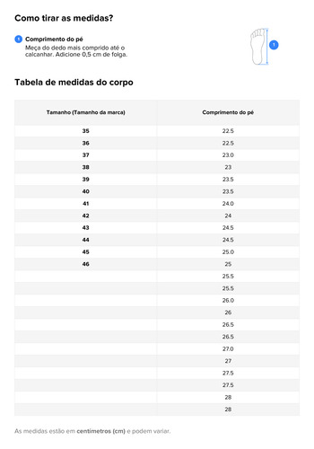 Comprimento dentro do tamanho 41 =25, 5cm.