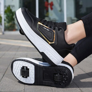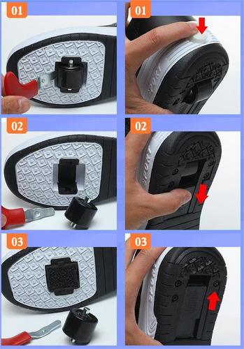A sola possui luzes LED coloridas e a roda traseira é retrátil, podendo ser guardada dentro da sola e usada com uma ou duas rodas ou simplesmente como tênis, possuindo capa deslizante para maior segurança.
