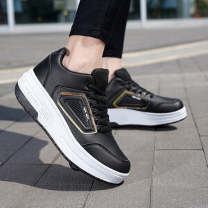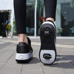A sola tem luzes de LED coloridas e o pneu traseiro é retrátil, podendo ser guardado dentro da sola e usado com uma ou duas rodas ou simplesmente como tênis. Eles têm uma tampa deslizante para maior segurança.