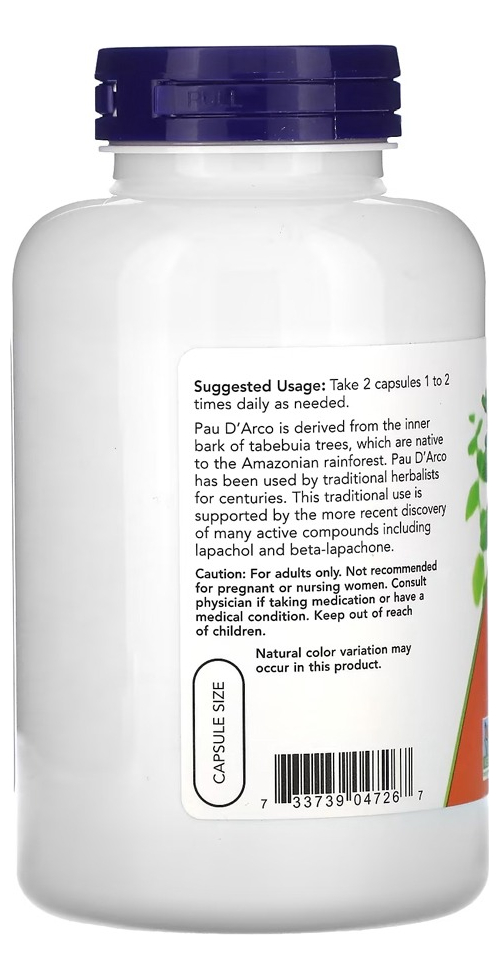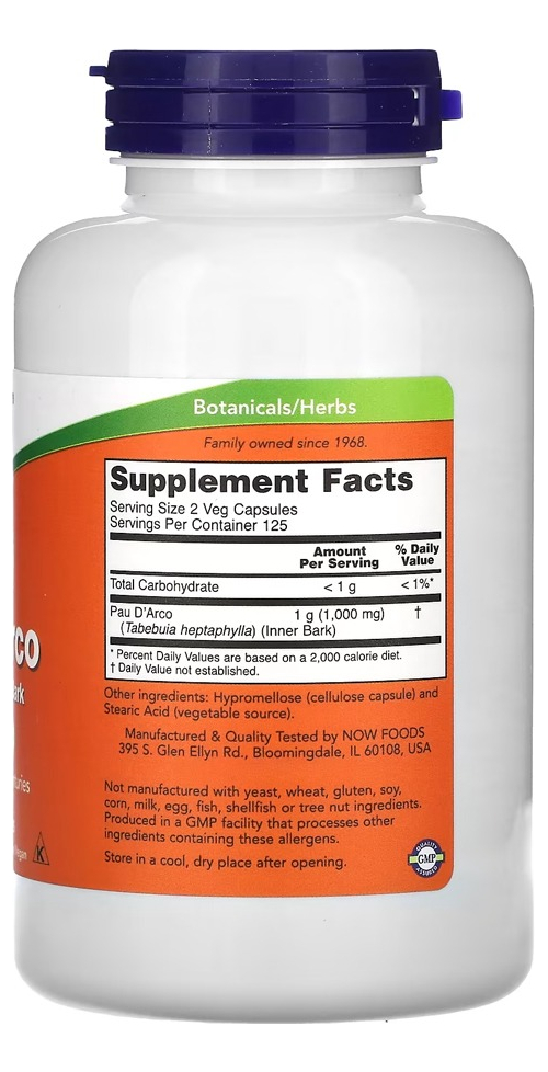 Pau D’arco 500mg Now Foods 250 Veg Caps – No Brasil