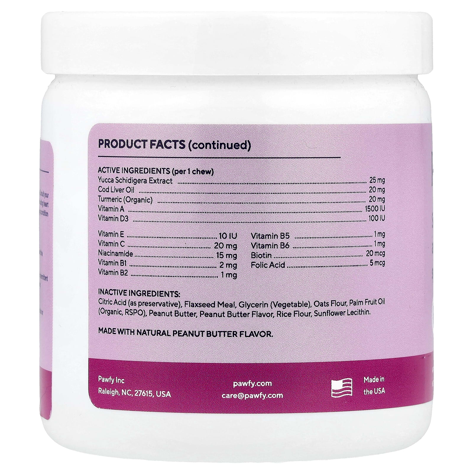 | Ingredientes Inativos: Ácido cítrico (como conservante), farinha de linhaça, glicerina (vegetal), farinha de aveia, óleo de palma (orgânico, RSPO), manteiga de amendoim, sabor de manteiga de amendoim, farinha de arroz, lecitina de girassol. | |