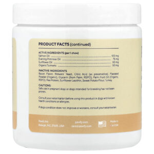 | Ingredientes Inativos: Sabor de bacon, levedura de cerveja, ácido cítrico (como conservante), linhaça em pó (orgânica), glicerina (de palma, rspo), óleo de palma (orgânica, rspo), proteína de ervilha, lecitina de girassol, farinha de batata-doce, peru. | |