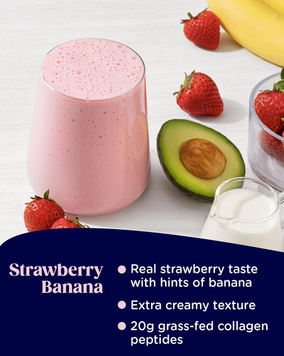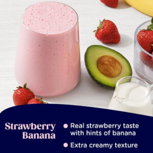 Delicioso: imagine uma combinação encantadora de morangos reais cheios de sabor, misturados com bananas maduras e creme em um batido macio e sedoso.