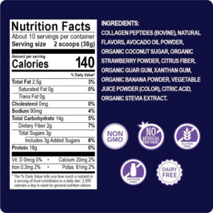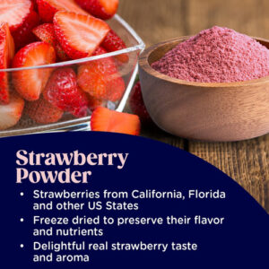 Ingredientes de qualidade: feitos com morangos e bananas orgânicos cuidadosamente secos para preservar seu sabor e nutrientes, misturados com óleo de abacate em pó para obter uma textura sedosa perfeita. Certificações: Não transgênico, sem artificial