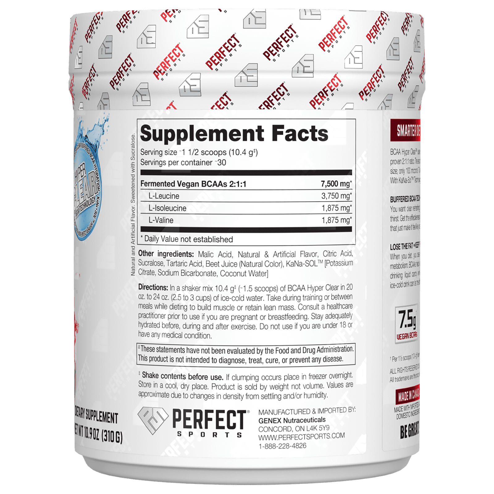 PERFECT Sports BCAA Hyper Clear Doce de Melancia Intenso 310 g (109 oz) – PERFECT Sports Suplementos Aminoácidos BCAA.