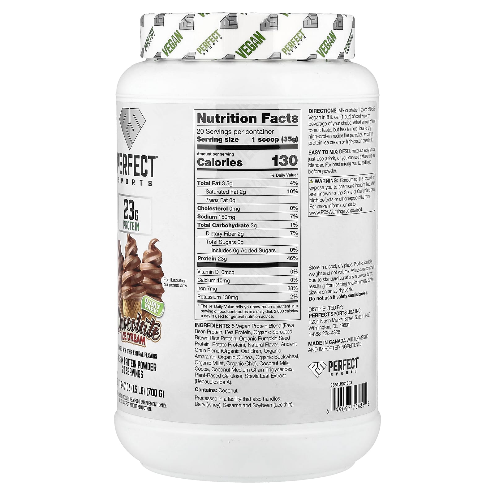 PERFECT Sports Óleo de Vegano Mistura de Proteínas 100% à Base de Plantas Sonho de Chocolate 700 g (15 lb) – PERFECT Sports Nutrição Esportiva Proteína Proteína Vegetal Mistura Proteica à Base de Plantas.