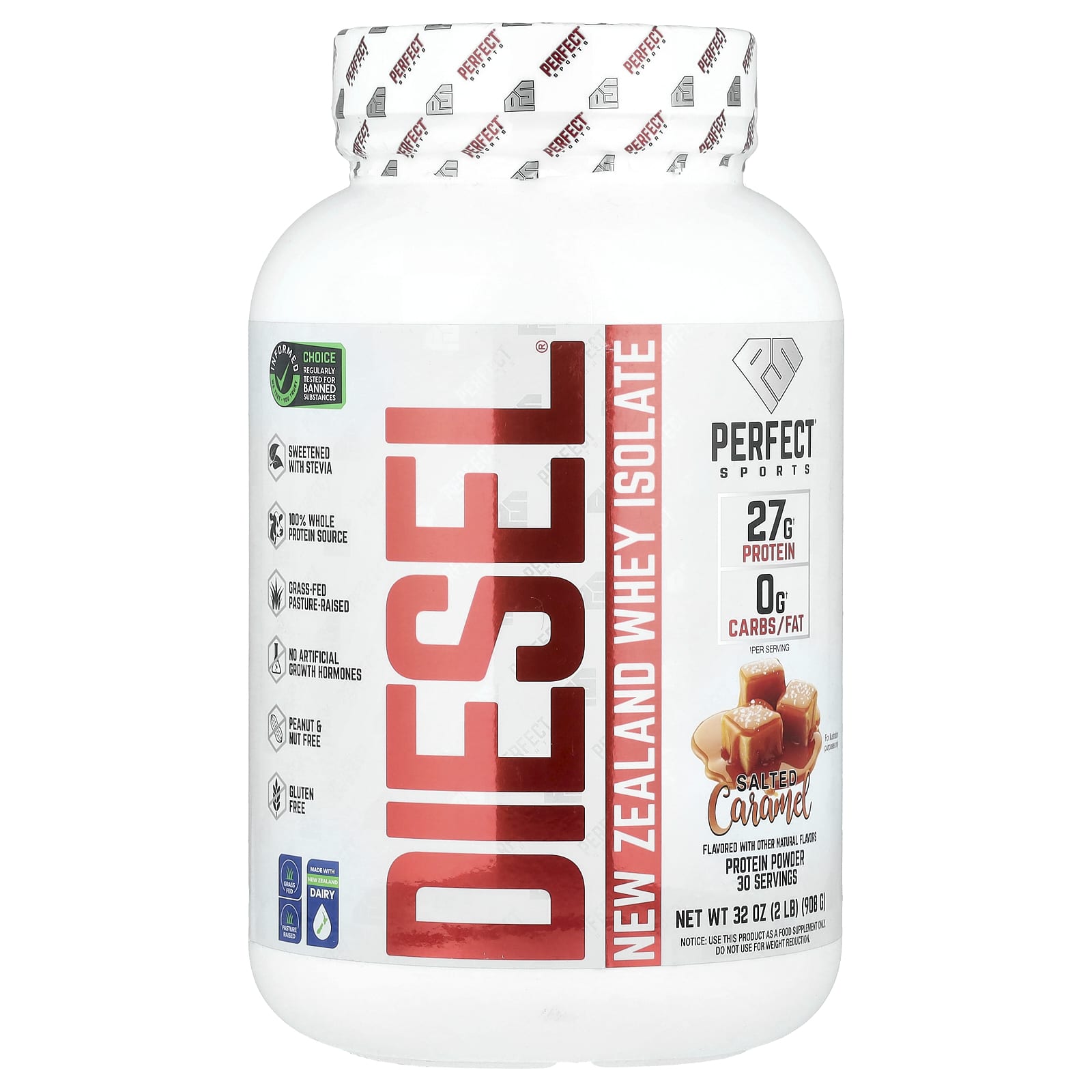 PERFECT Sports Óleo do Óleo de Óleo Isolado de Whey da Nova Zelândia Caramelo Salgado 908 g (2 lbs) – PERFECT Sports Nutrição Esportiva Proteína Proteína Whey Isolado protéico de soro de leite.