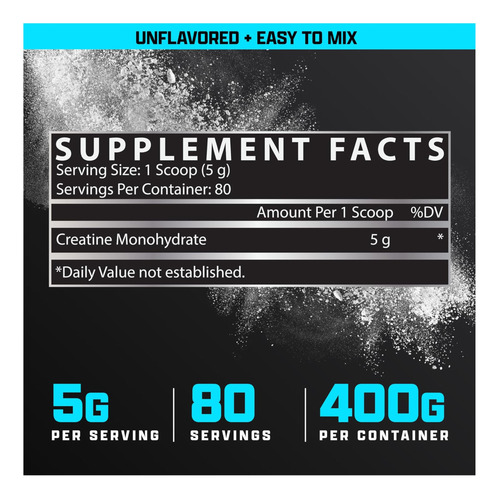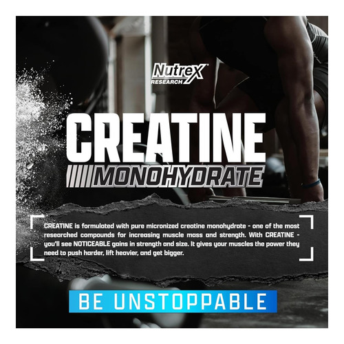 A unidade de creatina contém creatina monohidratada micronizada pura, segura e eficaz. A