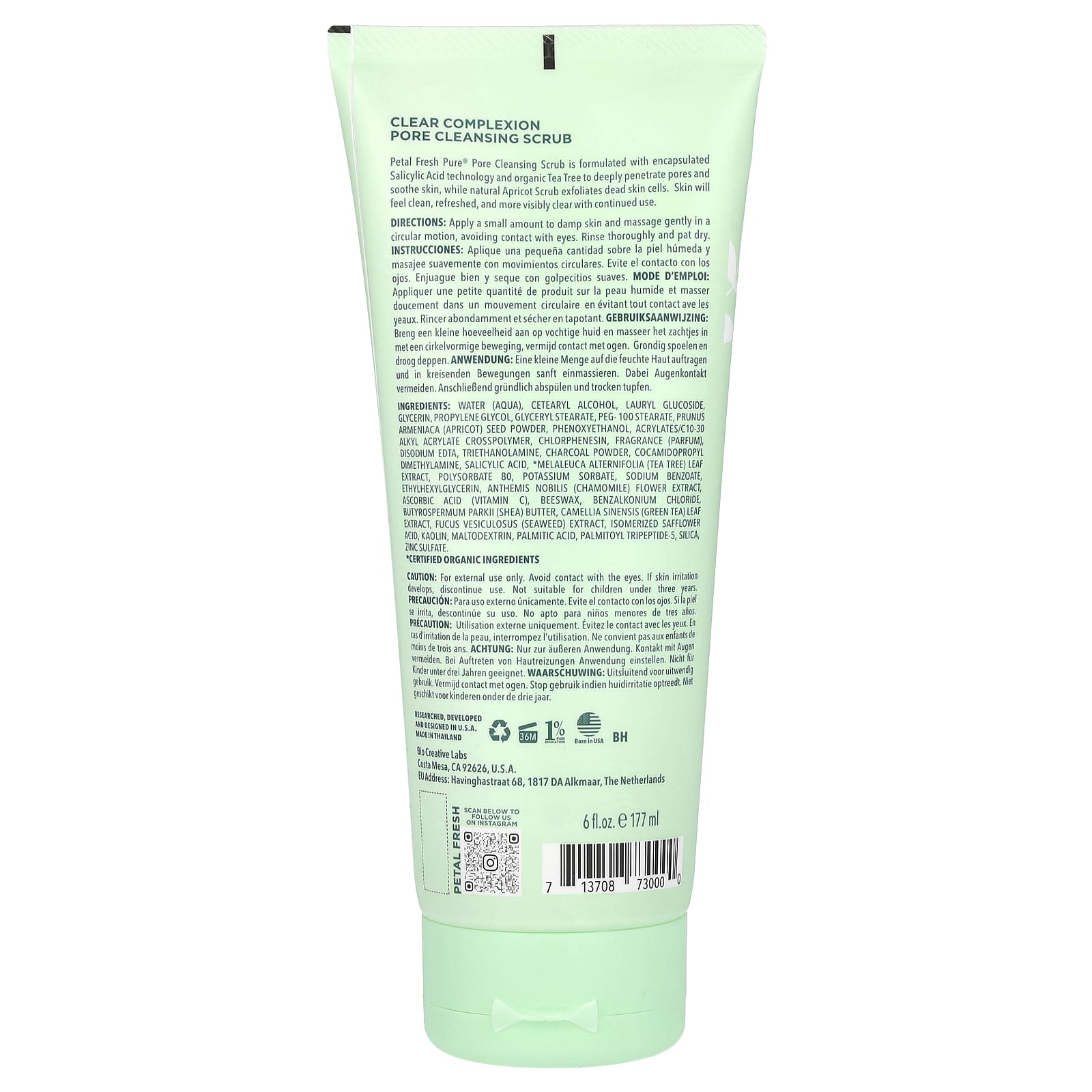 O Esfoliante para Limpeza dos Poros Petal Fresh Pure® é formulado com tecnologia de Ácido Salicílico encapsulado e Melaleuca orgânico para penetrar profundamente nos poros e acalmar a pele. O Esfoliante de Damasco natural esfolia as células mortas da pele. A pele ficará limpa, revigorada e mais visivelmente mais clara com o uso contínuo.