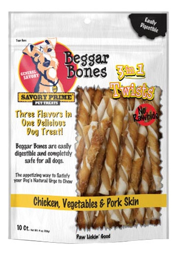 Petisco Para Cães Beggar Bone 3 Em 1 Twists 10 Unidades/stic