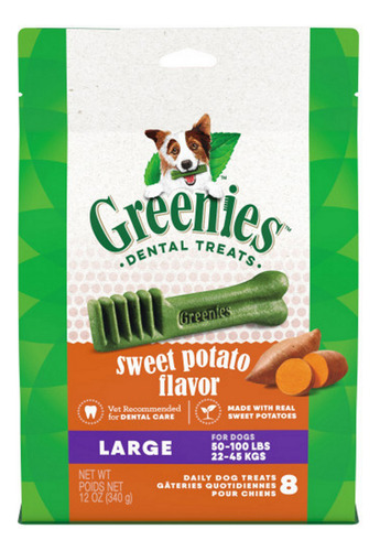 Apoia o atendimento odontológico para cães pequenos, feito com ingredientes naturais, além de vitaminas, minerais e nutrientes para cães de raças pequenas, entre 5 e 15 libras. As guloseimas dentais naturais greenies teenie ajudam a limpar os dentes e refrescar o hálito. Veterinário. Guloseimas recomendadas para cães com uma textura única que limpa até a linha da gengiva para ajudar a combater a placa bacteriana e o tártaro. Esses mastigadores dentais são recomendados pelo veterinário para cuidados dentários caseiros para cães feitos com batata-doce verdadeira.