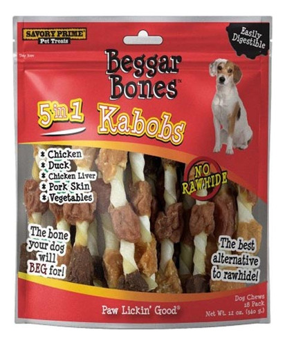 Os espetinhos Beggar Bone são uma ótima alternativa aos ossos de couro cru. Feito de carne de porco, frango, pato e vegetais criados na fazenda. Ideal para mastigadores leves a moderados. Completamente seguro. Necessidades de mastigação satisfeitas. Alto teor de proteína