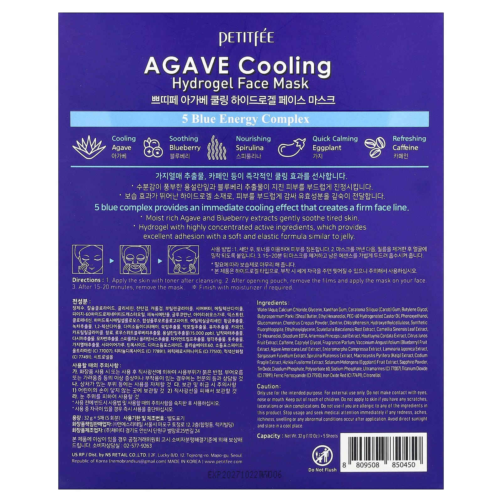Petitfee Máscara Facial de Beleza de Hidrogel para Resfriamento de Agave 5 Folhas 32 g (112 oz) Cada – Petitfee Beleza Máscaras Faciais de Beleza Máscaras Faciais Máscaras em folha K-Beauty.