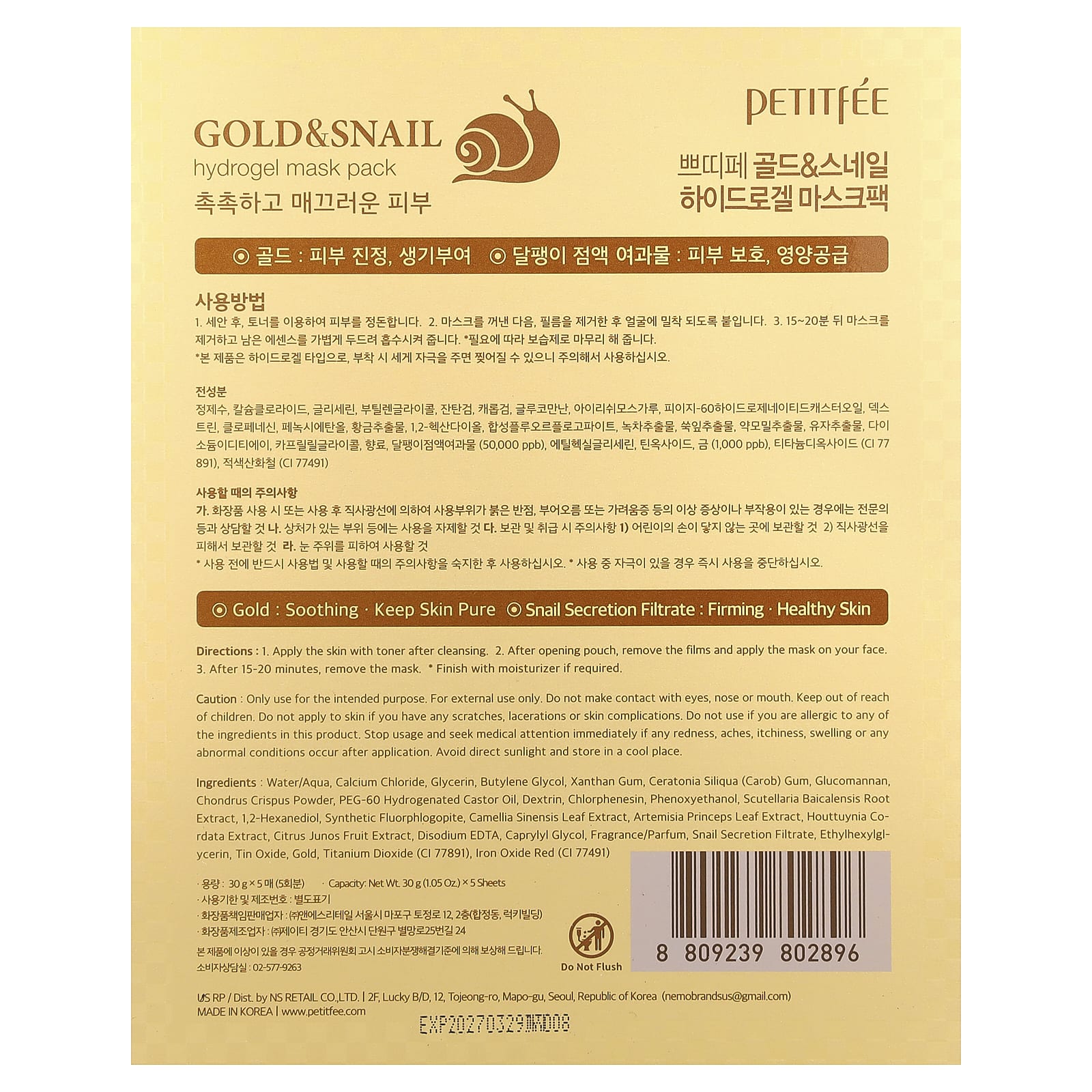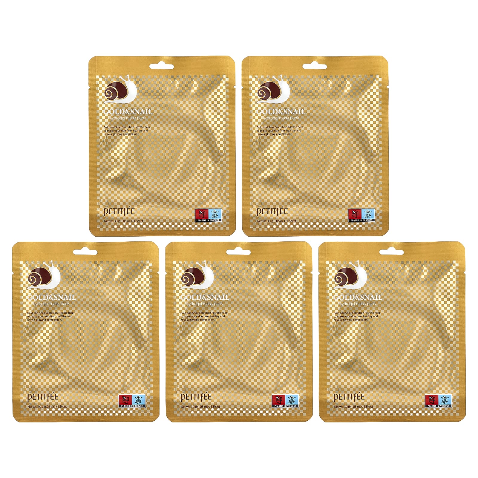 Petitfee Pacote de Máscara de Beleza de Hidrogel Gold e Snail 5 Folhas 30 g (105 oz) Cada – Petitfee Beleza Máscaras Faciais de Beleza Máscaras Faciais Máscaras em folha K-Beauty.