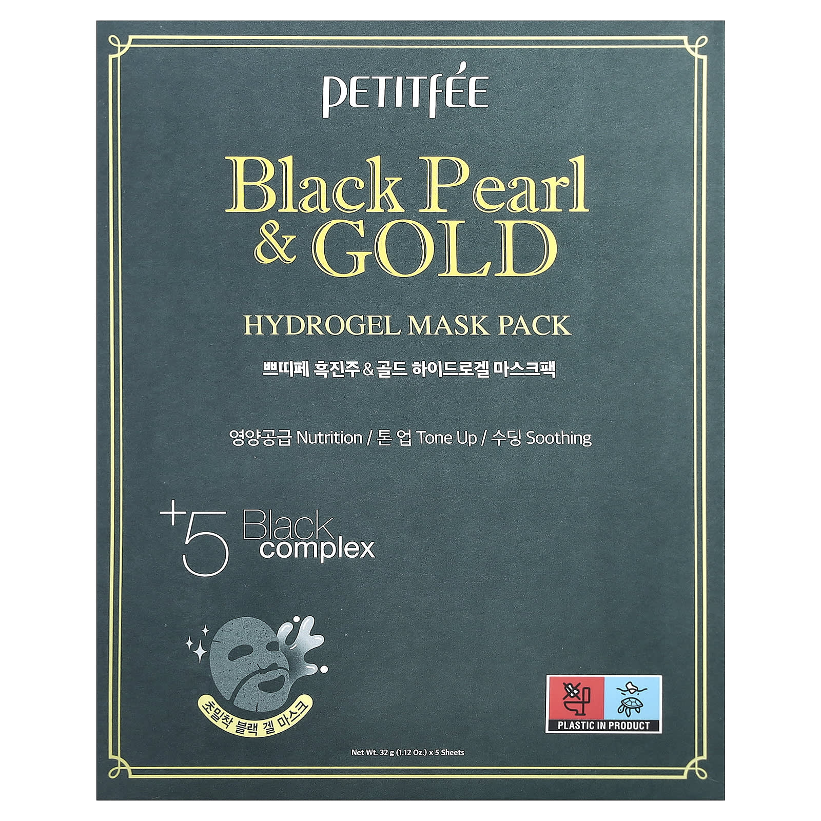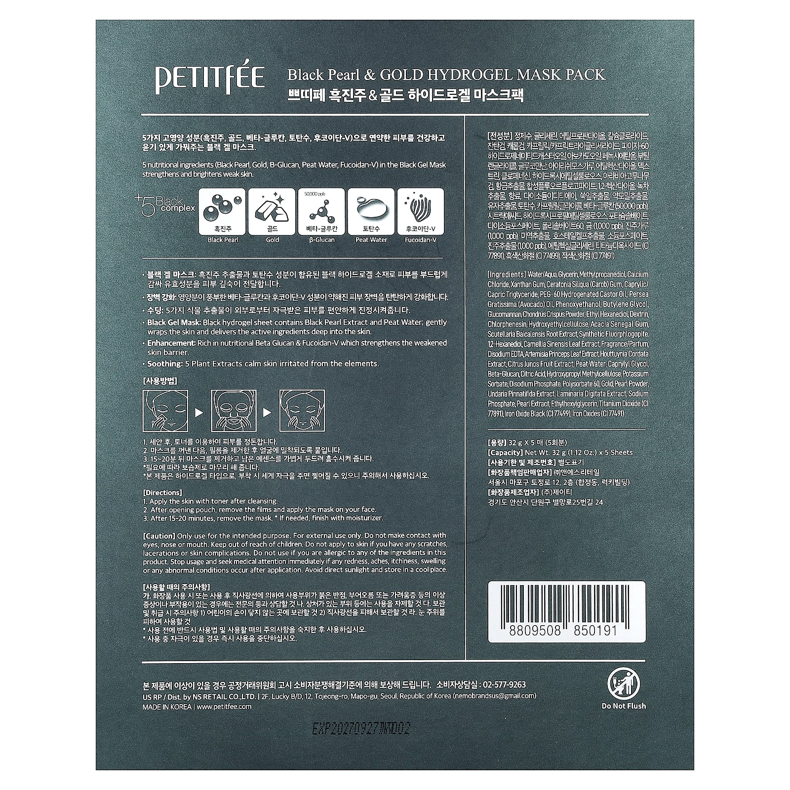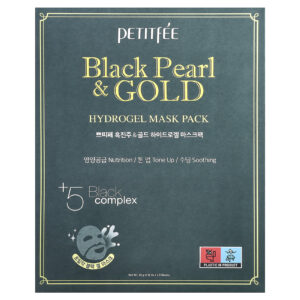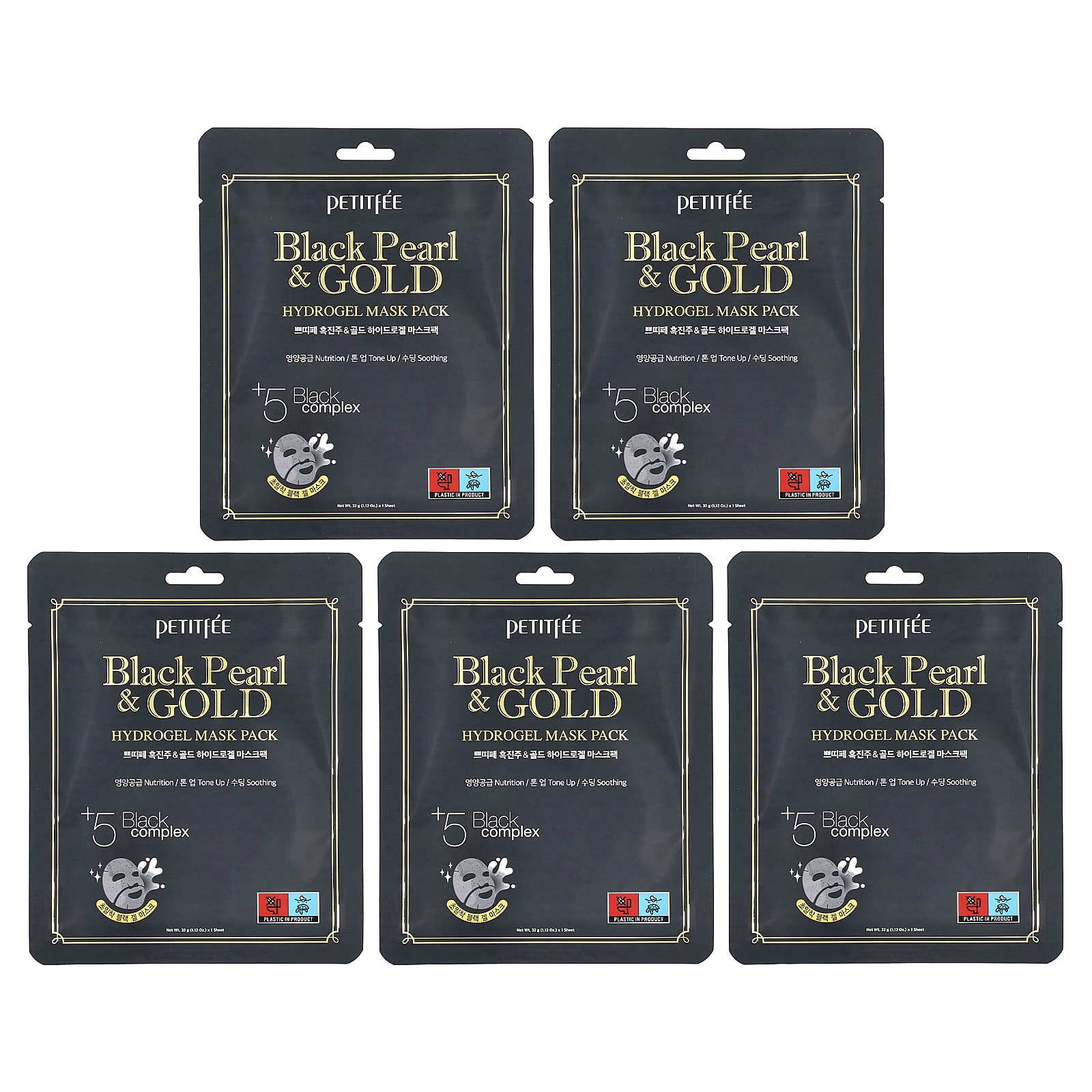 Petitfee Pacote de Máscara de Beleza Hidrogel de Pérola Negra e Ouro 5 Folhas 32 g (112 oz) Cada – Petitfee Beleza Máscaras Faciais de Beleza Máscaras Faciais Máscaras em folha K-Beauty.