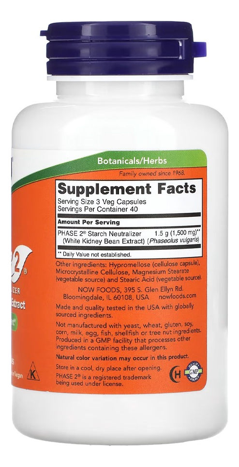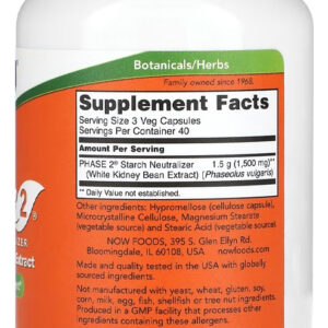 Phase 2 500mg Now Foods 120 Veg Cápsulas Importado