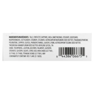 Talco, safira sintética, mica, estearato de dimeticonol, neopentanoato isoestearil, estearato de estearoil de octadecil, manteiga de sementes de astrocaryum murumuru, fragrância/parfum, polibuteno, caprililglicol, fenoxietanol, lauroil-lisina, manteiga de sementes de astrocaryum tucuma, manteiga de sementes de theobroma grandiflorum, hexileno glicol, óxido de estanho, tocoferol, lecitina, palmitato de ascorbila, estearato de glicerila, oleato de glicerila, ácido cítrico, óxidos de ferro (ci 77491, ci 77492, ci 77499), dióxido de titânio (ci 77891). Pode conter: vermelho lago 7 (ci 15850)
