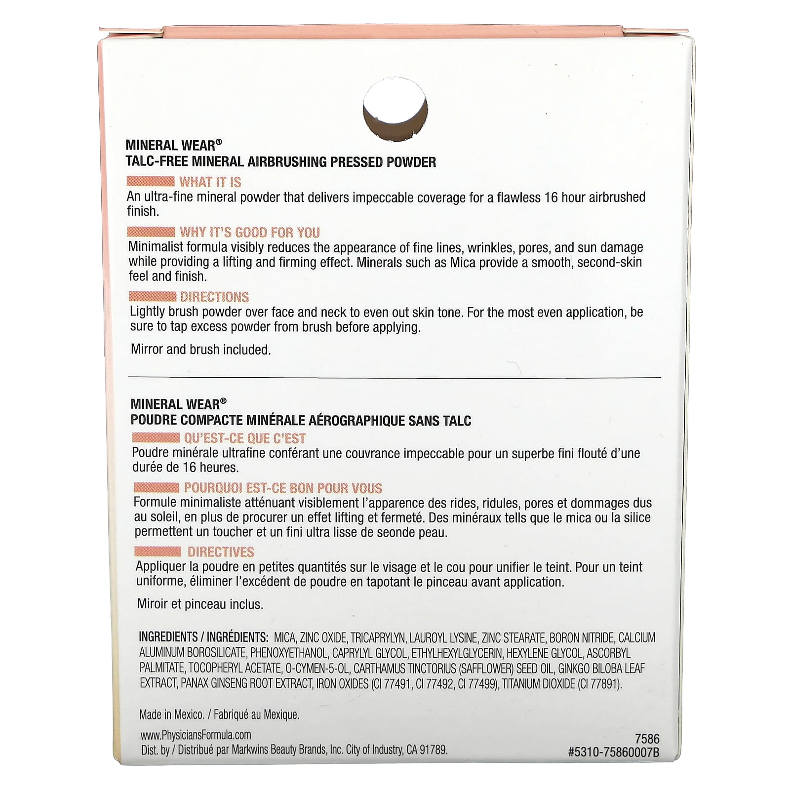Physicians Formula Mineral Wear Pó Mineral Prensado de Aerografia sem Talco 7586 Translúcido 75 g (026 oz) – Physicians Formula Beleza Maquiagem Rosto Spray e Pó Fixador Beleza por Ingrediente Esqualano.