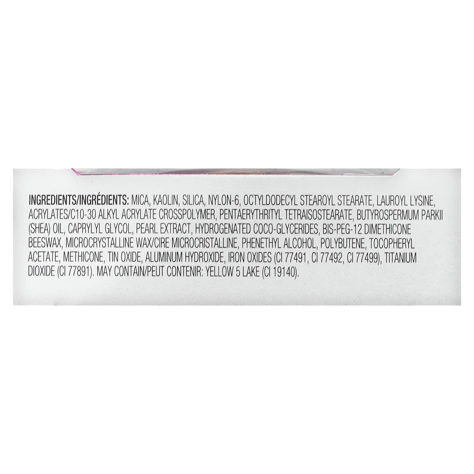 Mica, caulim, sílica, náilon-6, octyldodecyl stearoyl stearate, lauroil lisina, acrylates/c10-30 alkyl acrylate crosspolymer, pentaerythrityl tetraisostearate, óleo de Butyrospermum parkii (karité), caprylyl glycol, extrato de pérolas, glicerídeo de coco hidrogenado, cera de abelha bis-peg-12 dimethicone, cera microcristalina / cera microcristalina, álcool fenetílico, polybutene, acetato de tocoferol, meticona, óxido de estanho, hidróxido de alumínio, óxidos de ferro (CI 77491, CI 77492, CI 77499), dióxido de titânio (CI 77891). pode conter / peut contenir: laca amarela 5 (ci 19140).