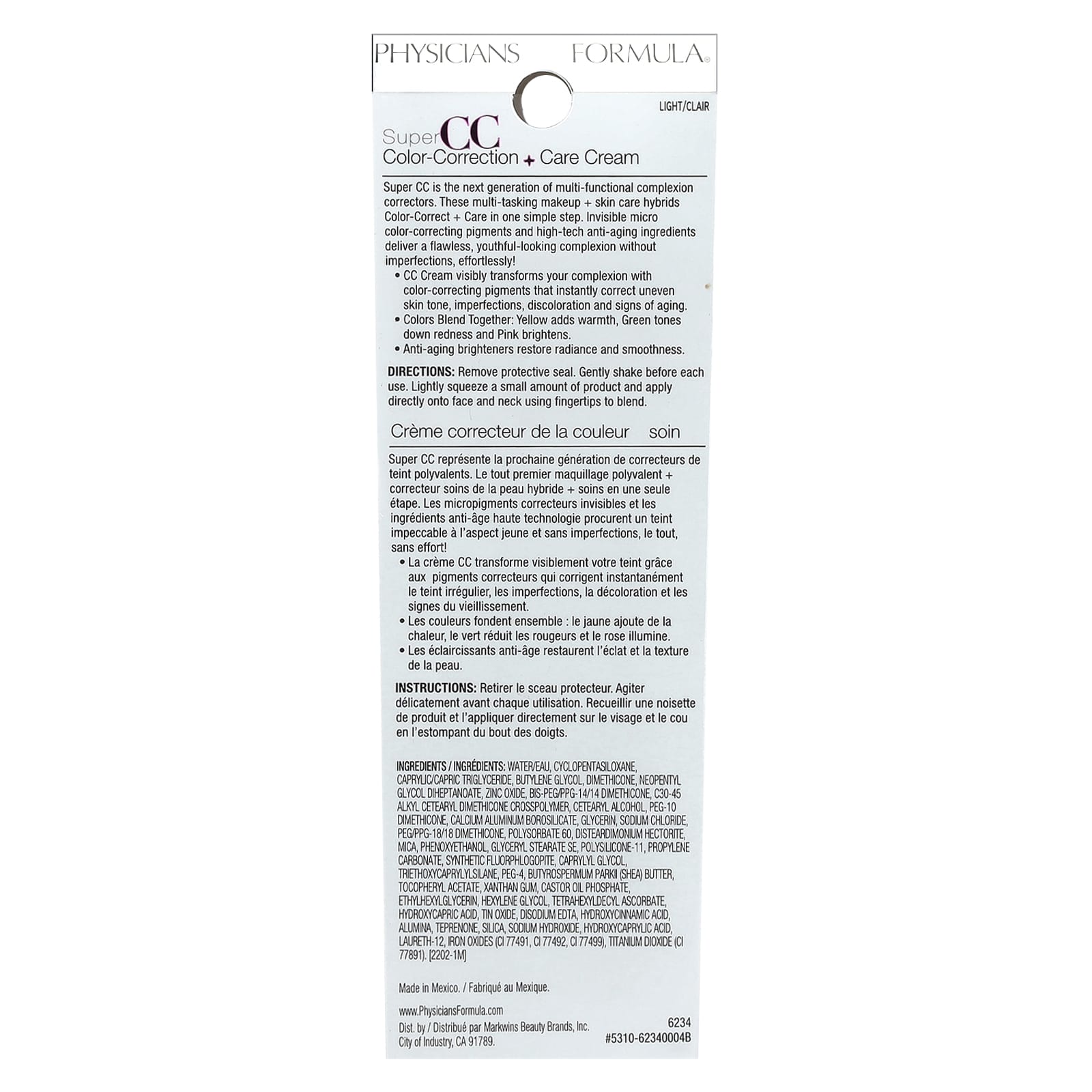 Physicians Formula Super CC Correção de Cor + Creme de Tratamento 6234 Light 35 ml (12 fl oz) – Physicians Formula Beleza Maquiagem Rosto Cremes BB e CC.