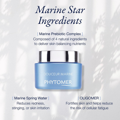 Creme facial hidratante calmante Phytomer Douceur Marine Reduz a vermelhidão e acalma a pele sensível Hidratante facial probiótico para pele seca Ingredientes naturais e sustentáveis 50 ml