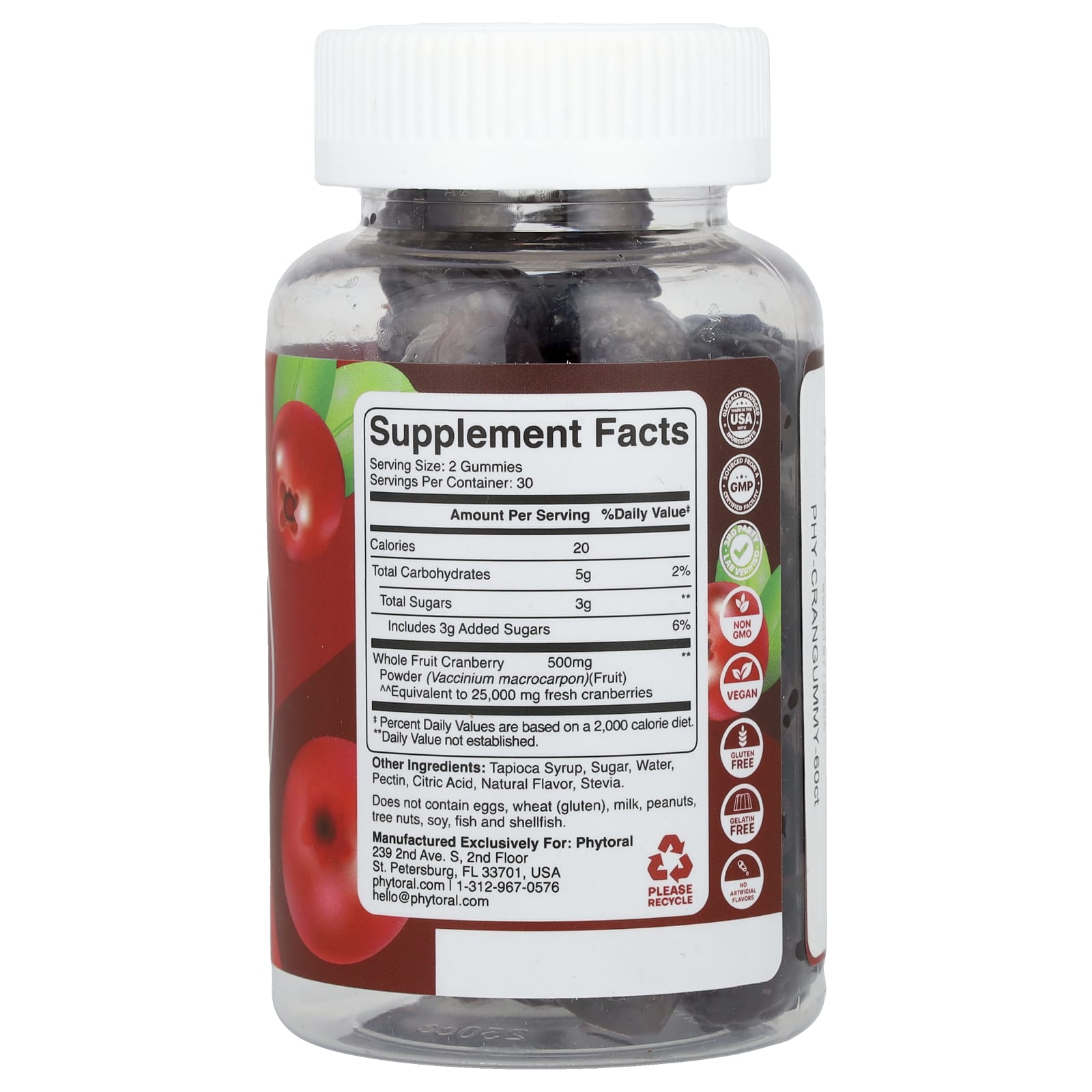 Phytoral Gomas de Cranberry Cranberry 60 Gomas (250 mg por Goma) – Phytoral Suplementos Ervas Suplementos de Cranberry.