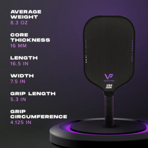 Vatic Pro Prism Flash Carbon Fiber 16mm – Foam Injected Walls – Includes Paddle Cover – Our PRISM series is a holistically designed, reimagined paddle that is the benchmark for an affordable carbon fiber pickleball paddle. With foam edge walls, our paddles make it easy to reset, place your shots, and finish points while ensuring durability and a nimble feel. Paddles have polyurethane inserts to reduce shock absorption and give players more feel. The PRISM series is ideal if you think thermoformed paddles are too powerful but traditional sandwich-style paddles are too soft. – Whats different about our PRISM series? The PRISM series is characterized by our unique cold-molding approach that adds control and touch without relying on intense heat application. With less raw power than our original series, the prism more than makes up for it in control and plushness. We have added foam-injected walls using a non-heat-intensive process that still gives the paddle a unibody construction. With this, the PRISM series combines cutting-edge design with reimagined versatility – The greater cross-sectional area, which allows it to distribute loads more evenly and resist deformation more effectively. This means you will have controlled power throughout the paddle, even on mishits. – USAPA Approved and used by top PPA professionals – Raw T700 carbon fiber produces more spin and longevity than fiberglass or graphite counterparts, as well as lower-grade carbon fiber, designed with the everyday player in mind.