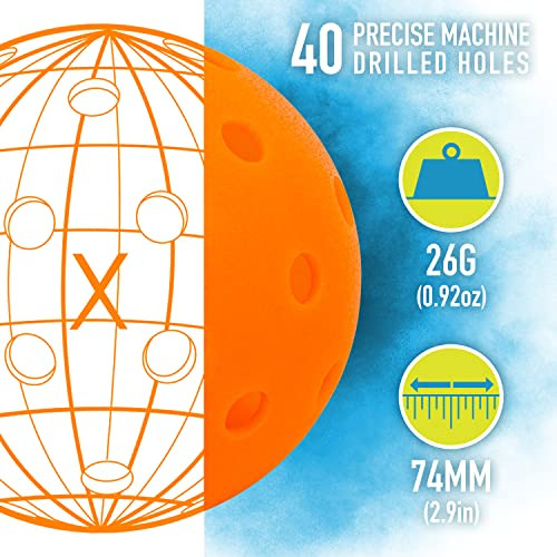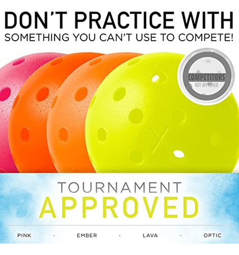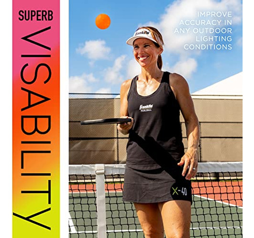 As bolas de pickleball X-40 da Franklin Sports são feitas para jogabilidade e desempenho premium e são as bolas de pickleball oficiais do Campeonato Aberto de Pickleball dos EUA! Projetadas com furos perfurados com precisão e construídas em polietileno durável, as bolas de pickle externas X-40 são construídas para superar e durar mais que outras bolas de pickle no mercado. Os orifícios perfurados à máquina em cada bola de pickleball garantem padrões de voo estáveis e rotação confiável em cada bola para uma sensação consistente em seus jogos de pickleball. A construção em polietileno ultrardurável evita amassamentos e rachaduras mesmo em quadras ao ar livre, para que você possa continuar jogando durante toda a temporada. Essas bolas de pickleball X-40 também foram rigorosamente testadas para quicar e girar de forma confiável, para que você possa fazer a tacada perfeita. Além disso, a cor vibrante de néon facilita o rastreamento da bola pelo ar para maior visibilidade em todas as superfícies da quadra. Projetadas de acordo com os regulamentos de tamanho e peso do USA Pickleball (USAPA), essas bolas de pickleball de tamanho oficial para uso externo são perfeitas para jogos recreativos e em torneios. As bolas de pickleball Franklin X-40 são de qualidade profissional e são as bolas de pickleball oficiais ao ar livre do Campeonato Aberto de Pickleball dos EUA. Então, ajude a elevar seus jogos de pickleball para o próximo nível e pegue seu conjunto de pickleballs X-40 Outdoor da Franklin Sports hoje mesmo!