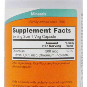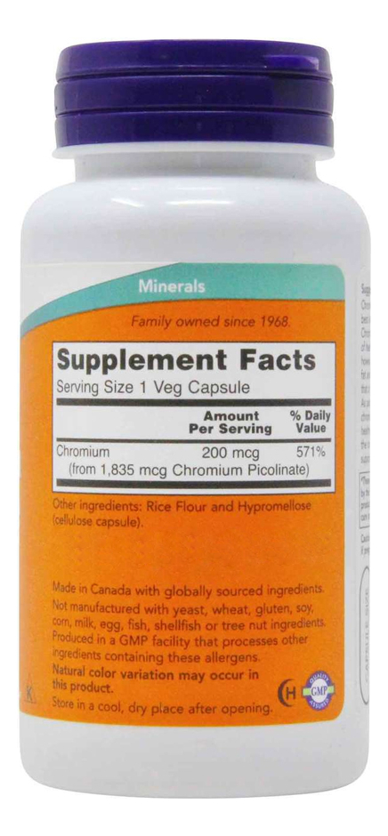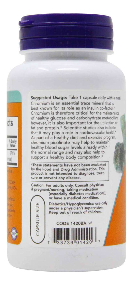 Picolinato Cromo 200mcg Now Foods 100cáps + Porta Cápsulas