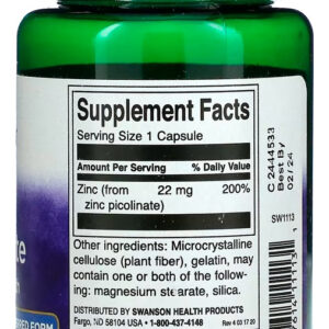 1. Suporte Nutricional com Zinco: O Picolinato de Zinco da Swanson oferece 22mg de zinco por cápsula, um mineral essencial para várias funções no organismo. Esta formulação proporciona um suporte nutricional focado, atendendo às necessidades diárias de zinco.