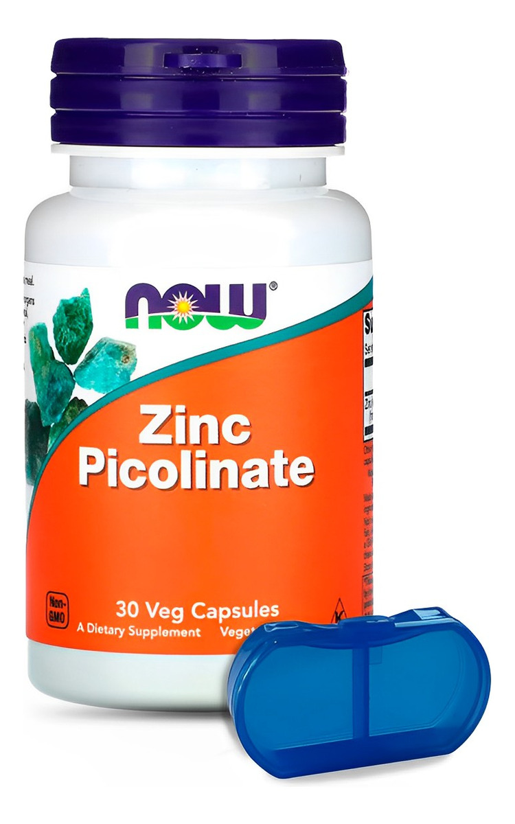 Picolinato de Zinco 50 mg Now Foods 30 Cáps Importado + Porta Cápsulas