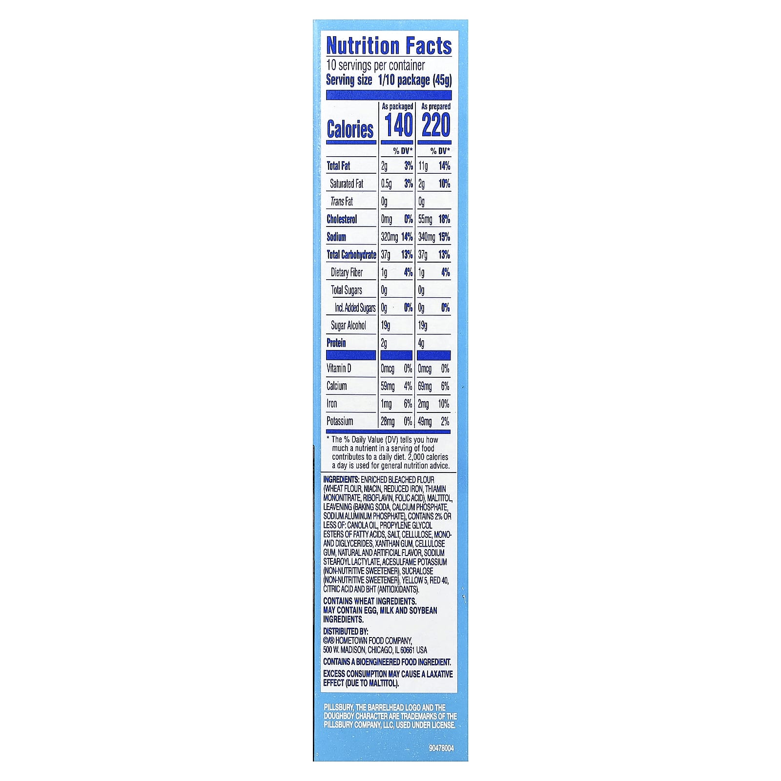 Farinha branqueada enriquecida (farinha de trigo, ácido nicotínico, ferro reduzido, mononitrato de tiamina, riboflavina, ácido fólico), maltitol, fermentação (bicarbonato de sódio, fosfato de cálcio, fosfato de alumínio de sódio), contém até 2% de: óleo de canola, ésteres de propilenoglicol de ácidos graxos, sal, celulose, mono e diglicerídeos, goma xantana, goma de celulose, sabores naturais e artificiais, sodium stearoyl lactate, acessulfamo potássico (adoçante não nutritivo), adoçante não nutritivo de sucralose), amarelo de tartrazina, vermelho 40, ácido cítrico e bht (antioxidantes).