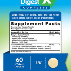 Dois comprimidos veganos ajudam a reduzir gases ocasionais, desconforto e inchaço associados a alimentos como feijão, vegetais e grãos integrais.* Esta fórmula direcionada fornece as enzimas digestivas alfa galactosidase, amilase e lactase, além de vinagre de cidra e ervas açafrão e ruivo.