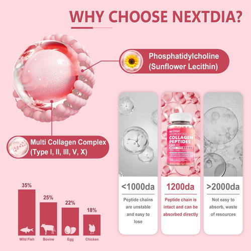 • ?10x melhor absorção? Cada porção contém peptídeos de colágeno de 2000 mg (cadeias peptídicas 1200DA após hidrólise) para absorção direta. A lecitina de girassol é adicionada para formar colágeno lipossômico para melhor manter a concentração e aumentar a absorção. 10x Melhor taxa de absorção e efeito do que o colágeno tradicional!