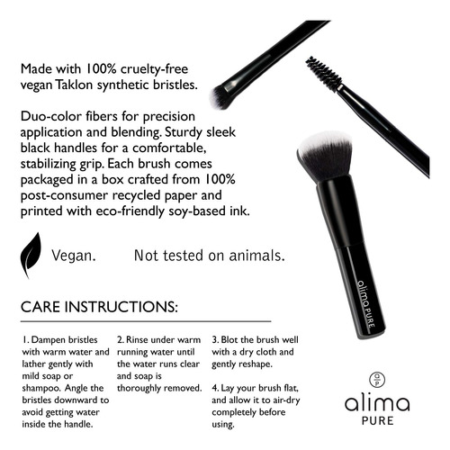 Silky Taklon bristles blend your best match of foundation for light to medium buildable coverage. Pairs with Satin Matte Foundation, Pressed Foundation with Rosehip Antioxidant Complex, Balancing Primer Powder, and Satin Finishing Powder. – POWDER FOUNDATION BRUSH: The Alima Pure staple foundation brush for expertly blended coverage and a polished finish. Silky Taklon bristles blend foundation for light to medium buildable coverage. Our foundation brush is an essential face makeup brush. – USES: Our foundation makeup brush works to make sure you have smooth coverage. Pairs with Satin Matte Foundation, Pressed Foundation with Rosehip Antioxidant Complex, Primer Powder, and Satin Finishing Powder. – ABOUT US: We are Alima Pure. We only use the highest quality, purest ingredients. Without compromise, our products are never tested on animals. – CRUELTY FREE & VEGAN: Made with 100% cruelty-free vegan Taklon synthetic bristles. Duo-color fibers for precision application and blending. Sturdy sleek black handles for a comfortable, stabilizing grip. Each brush comes packaged in a box crafted from 100% post-consumer recycled paper and printed with eco-friendly soy-based ink. – ENVIRONMENTAL RESPONSIBILITY: We are a certified B Corporation, celebrating 10 years of being Carbon Neutral, donating 1% of our annual sales revenue to grassroots environmental organizations dedicated to protecting our planet.