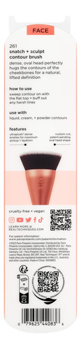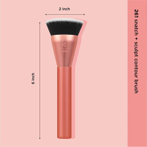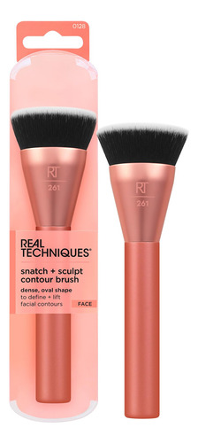 Pincel de maquiagem Real Techniques Snatch + Sculpt Contour, para contorno e bronzeador líquido e cremoso, cabeça plana e oval para misturar e polir, cerdas densas e sintéticas, veganas e sem crueldade, 1 unidade — O pincel de maquiagem Real Techniques Snatch + Sculpt Contour tem uma cabeça oval alongada para definir os contornos do rosto – As cerdas densas funcionam bem no produto e elimine linhas fortes – O pincel 261 oferece cobertura ajustável para um acabamento natural e elevado – Melhor usado com contornos e bronzeadores líquidos, cremosos e em pó – Formato com patente pendente para aplicação precisa e Mistura perfeita — Design de pincel Triple Threat para melhorar sua rotina de maquiagem — Apresenta um formato de cabeça oval personalizado — Cerdas densas e ultramacias para máxima absorção e deitação — 100% livres de crueldade e veganos — Os produtos Real Techniques nunca são testados em animais — Projetados para aplicações de maquiagem de longa duração