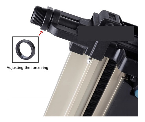 A diferença entre o ar comprimido e a pressão atmosférica é usada para fazer o pino de disparo (pistão) alternar no cilindro através do gatilho; o conjunto do carregador é composto por uma cabeça de arma, uma tampa de arma, um carregador fixo, um carregador móvel e outros acessórios, e é controlado por uma mola de compressão ou uma mola de tensão. A mola envia o prego para dentro da ranhura da tampa da arma e, quando o percussor sai da boca da arma, o prego é retirado.