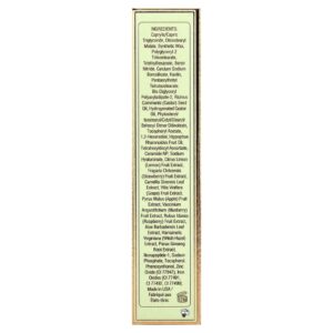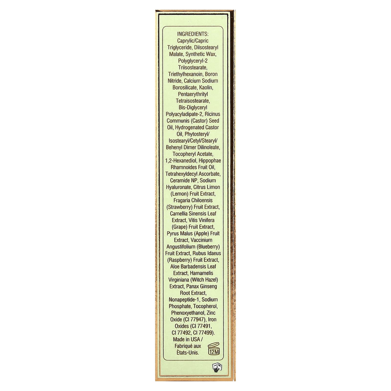 Caprylic/capric triglyceride, diisostearyl malate, cera sintética, polyglyceryl-2 triisostearate, triethylhexanoin, nitreto de boro, calcium sodium borosilicate, caulim, pentaerythrityl tetraisostearate, bis-diglyceryl polyacyladipate-2, óleo da semente de Ricinus communis (rícino), óleo de rícino hidrogenado, fitoesterol/isoestearílico/cetil/estearil/behenyl dimer dilinoleate, acetato de tocoferol, 1,2-hexanediol, óleo da fruta de Hippophae rhamnoides, tetrahexidecil ascorbato, ceramida NP, hialuronato de sódio, extrato da fruta Citrus limon (limão-siciliano), extrato da fruta de Fragaria chiloensis (morango), extrato da folha de Camellia sinensis, extrato da fruta de Vitis vinifera (uva), extrato da fruta de Pyrus malus (maçã), extrato da fruta de Vaccinium angustifolium (mirtilo), extrato da fruta de Rubus idaeus (framboesa), extrato da folha de Aloe barbadensis, extrato de Hamamelis virginiana (hamamélis), extrato da raiz de Panax ginseng, nonapeptídeo-1, fosfato de sódio, tocoferol, fenoxietanol, óxido de zinco (CI 77947), óxidos de ferro (CI 77491, ci 77492, CI 77499).
