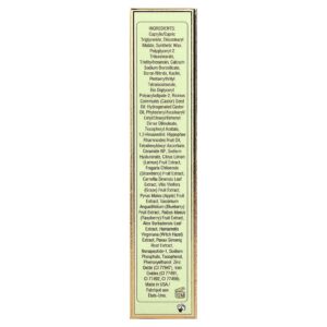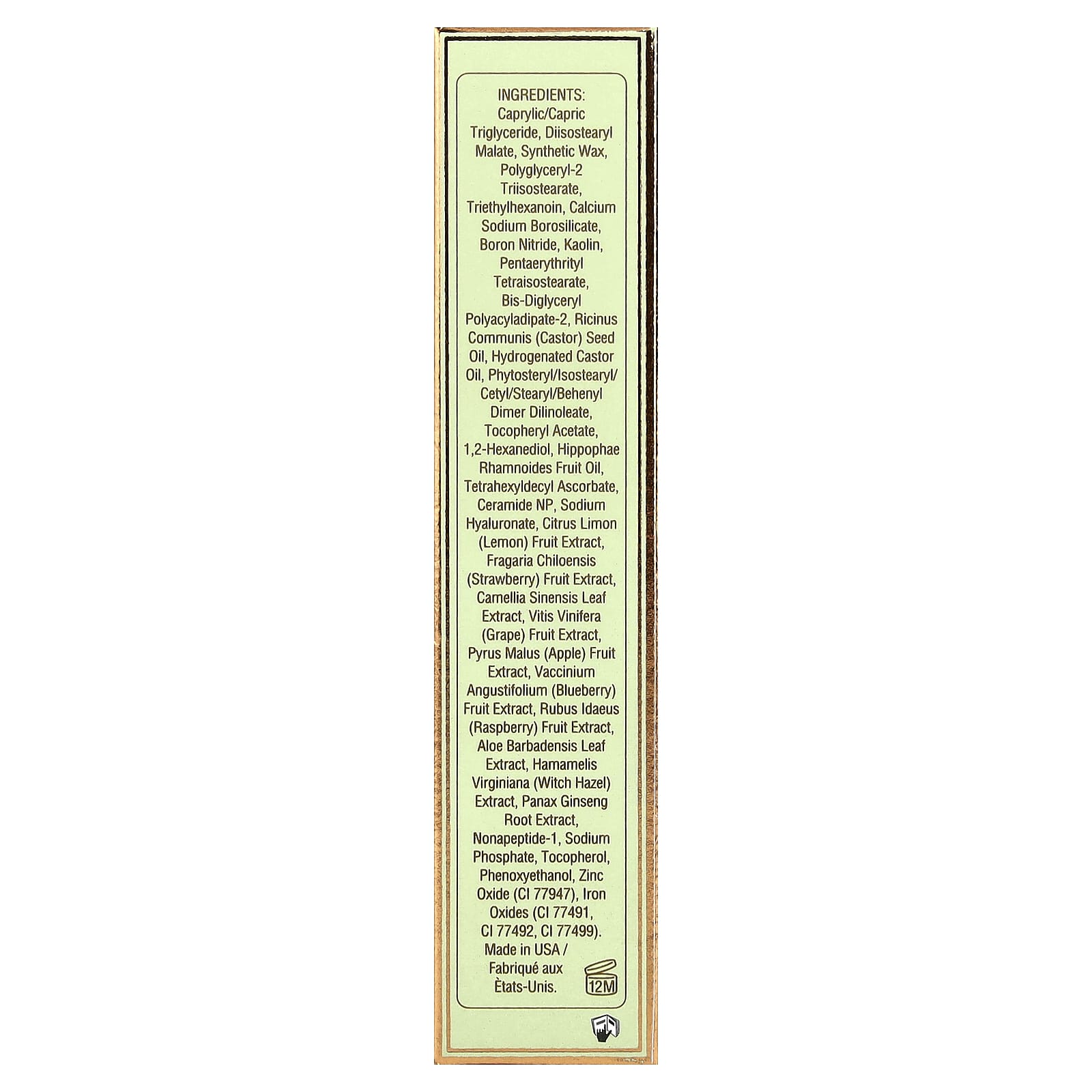 Caprylic/capric triglyceride, diisostearyl malate, cera sintética, polyglyceryl-2 triisostearate, triethylhexanoin, nitreto de boro, calcium sodium borosilicate, caulim, pentaerythrityl tetraisostearate, bis-diglyceryl polyacyladipate-2, óleo da semente de Ricinus communis (rícino), óleo de rícino hidrogenado, fitoesterol/isoestearílico/cetil/estearil/behenyl dimer dilinoleate, acetato de tocoferol, 1,2-hexanediol, óleo da fruta de Hippophae rhamnoides, tetrahexidecil ascorbato, ceramida NP, hialuronato de sódio, extrato da fruta Citrus limon (limão-siciliano), extrato da fruta de Fragaria chiloensis (morango), extrato da folha de Camellia sinensis, extrato da fruta de Vitis vinifera (uva), extrato da fruta de Pyrus malus (maçã), extrato da fruta de Vaccinium angustifolium (mirtilo), extrato da fruta de Rubus idaeus (framboesa), extrato da folha de Aloe barbadensis, extrato de Hamamelis virginiana (hamamélis), extrato da raiz de Panax ginseng, nonapeptídeo-1, fosfato de sódio, tocoferol, fenoxietanol, óxido de zinco (CI 77947), óxidos de ferro (CI 77491, ci 77492, CI 77499).