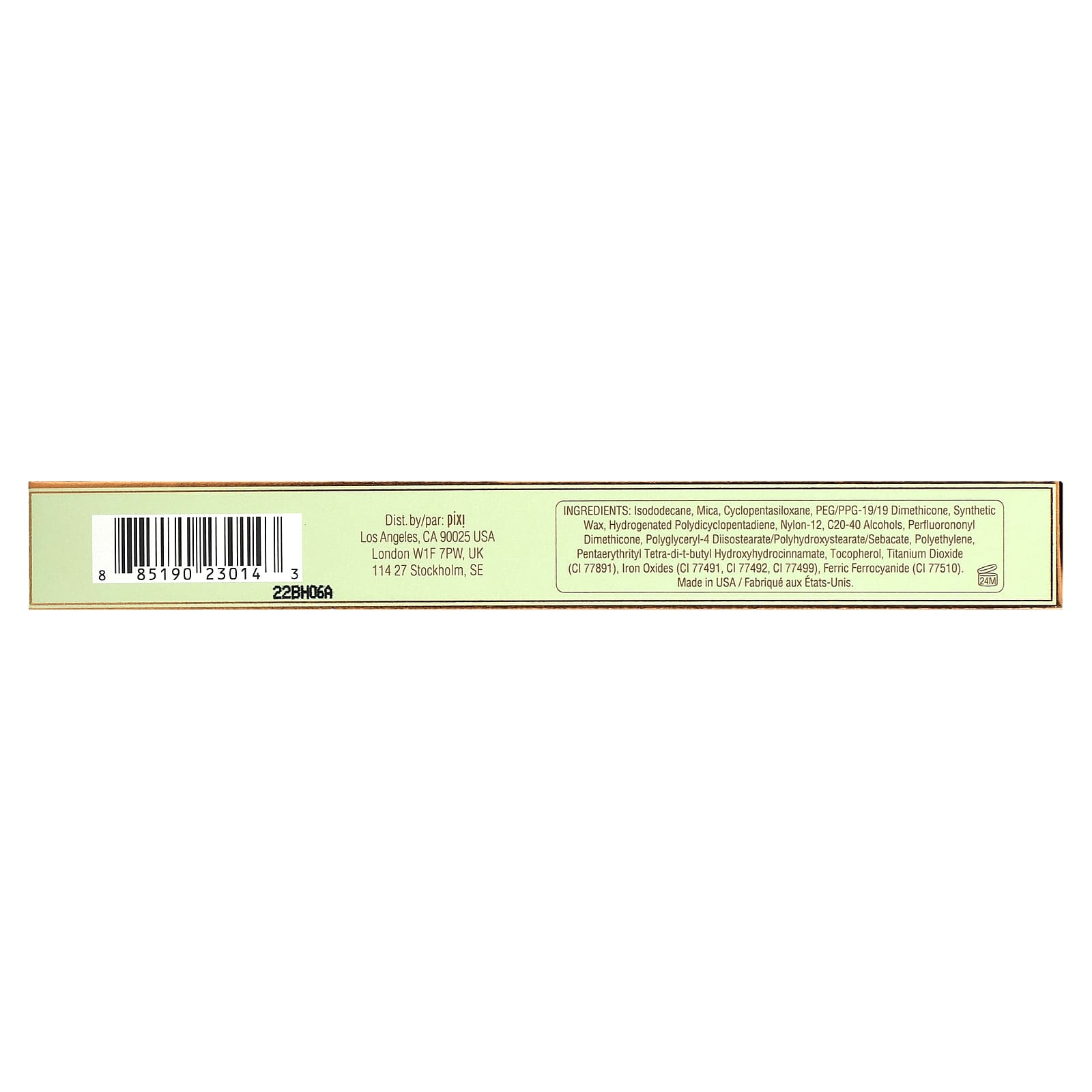 isododecane, decametilciclopentasiloxano, dimeticona peg / ppg-19/19, cera sintética, polidiciclopentadieno hidrogenado, náilon-12, álcoois c20-40, perfluorononyl dimethicone, polyglyceryl-4 diisostearate/polyhydroxystearate/sebacate, polietileno, pentaeritritil tetra-di-t-butil, hidroxi-hidrocinamato, tocoferol. [+/- óxidos de ferro (ci 77491, CI 77492, CI 77499), mica (CI 77019), ferrocianeto férrico (CI 77510)].