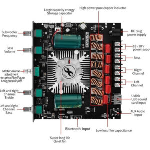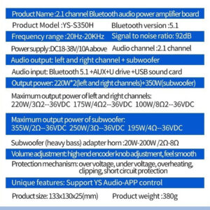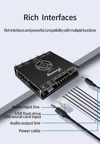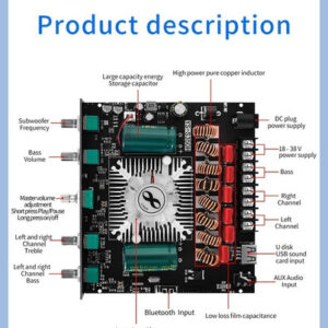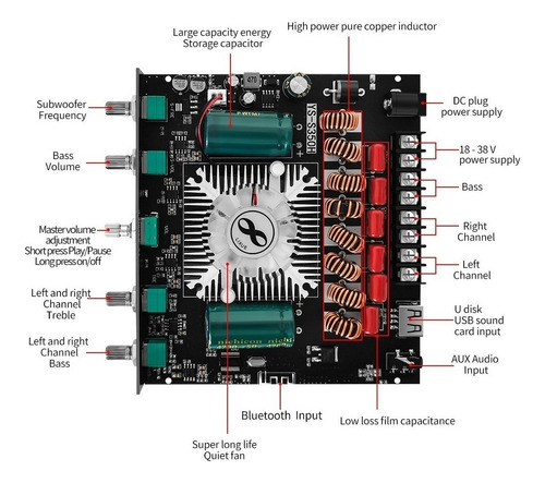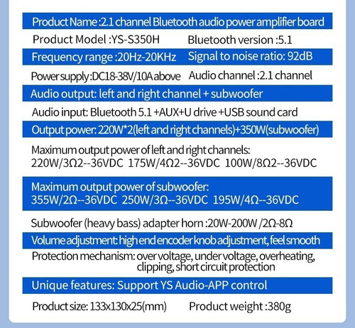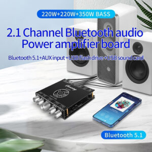 Função especial: suporte ao controle de aplicativos de áudio Cor: preto Características: placa amplificadora de áudio Bluetooth de 1.2.1 canais com configuração de subwoofer 220 W + 220 W + 350 W, também compatível com entrada AUX Bluetooth 5.1 + disco U reprodução+placa de som USB