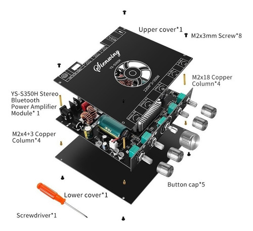 1 kit de placa amplificadora Bluetooth, 1 chave de
