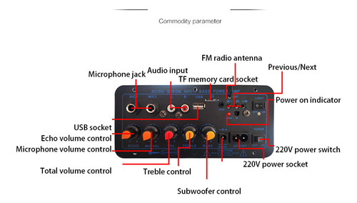 Placa amplificadora de potência 1 * Plugue 1 * Controle remoto 1 * Cabo