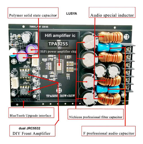 : chip TPA3255 Modo de entrada: interface de soquete estéreo com fio de 3,5 M (