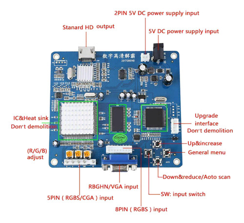 Características: O produto é novo e tem qualidade, suporta entrada de sinal RGBS/CGA/RGBHV/EGA/VGA. Suporta