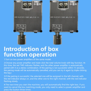(Necessita de 2 placas amplificadoras de áudio) Som nítido e de boa qualidade. Proteções antirreversas de entrada, proteções contra superaquecimento, proteções contra curto-circuito, proteções antiestáticas. Feito de material de boa qualidade para longa vida útil.