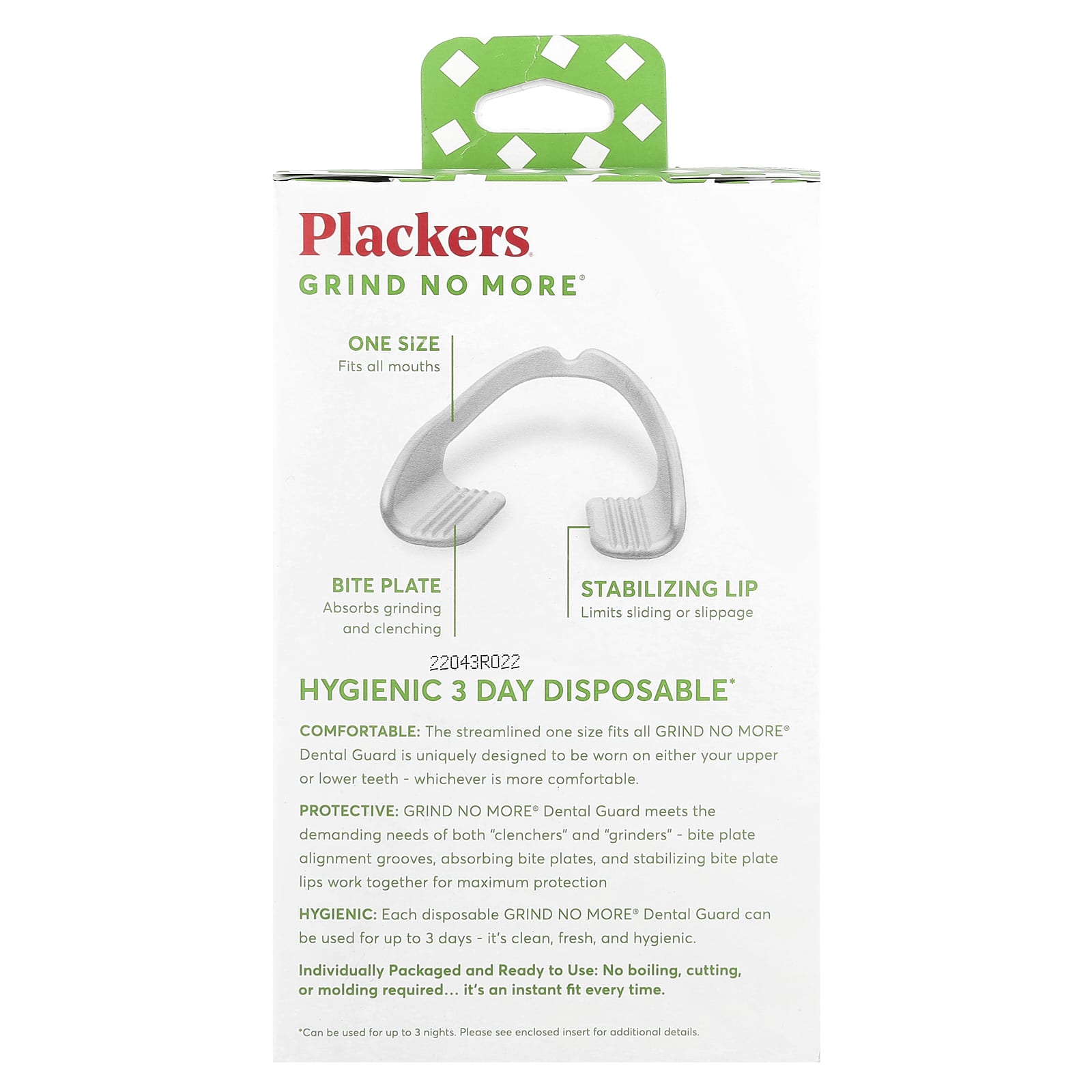 Plackers Grind No More Protetores Dentários Descartáveis 16 Unidades – Plackers Cuidados Pessoais Higiene Bucal Acessórios de cuidados orais.